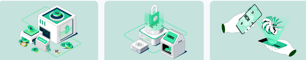 Armazenamento em cold wallet e protocolos de segurança de nível institucional.