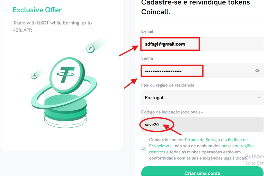 Usar o Código de Referência da Coincall SAVE20 é extremamente simples. Basta seguir estes passos: