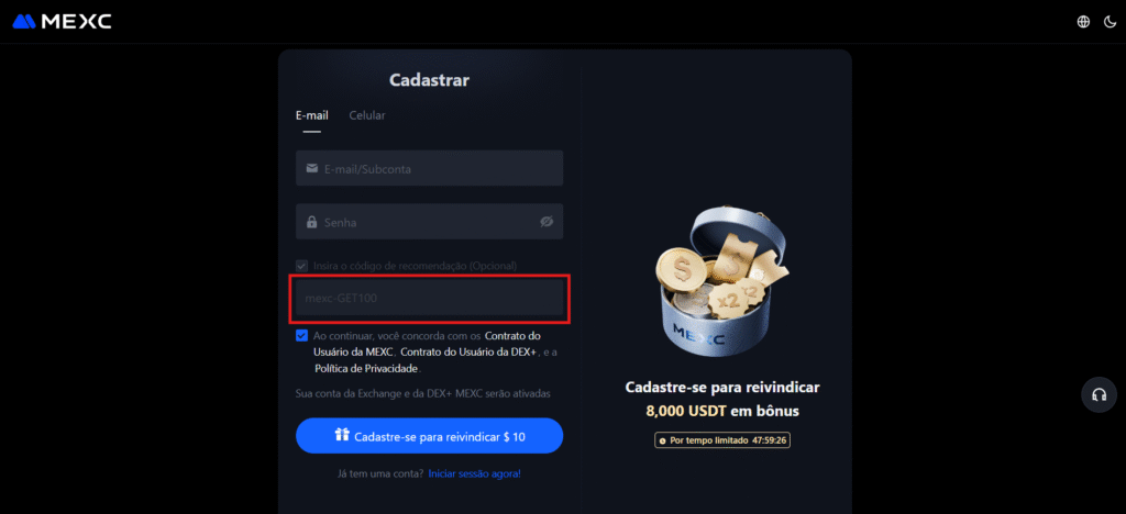 Veja o guia completo passo a passo para se registrar na MEXC Exchange e ativar suas recompensas: